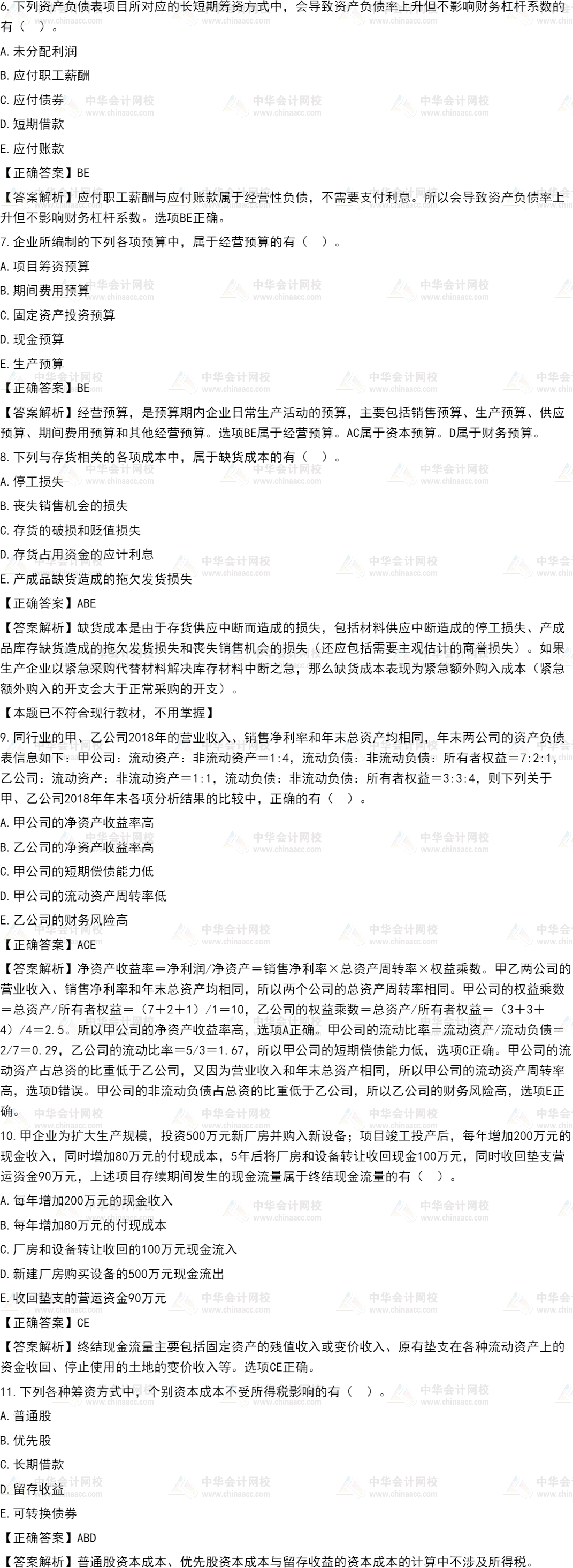 本试卷内容根据正保会计网校论坛考生讨论内容,由网校教学专家整理。