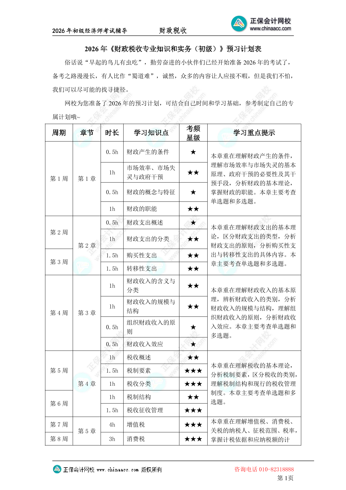 2026初级经济师《经济基础知识》预习计划表