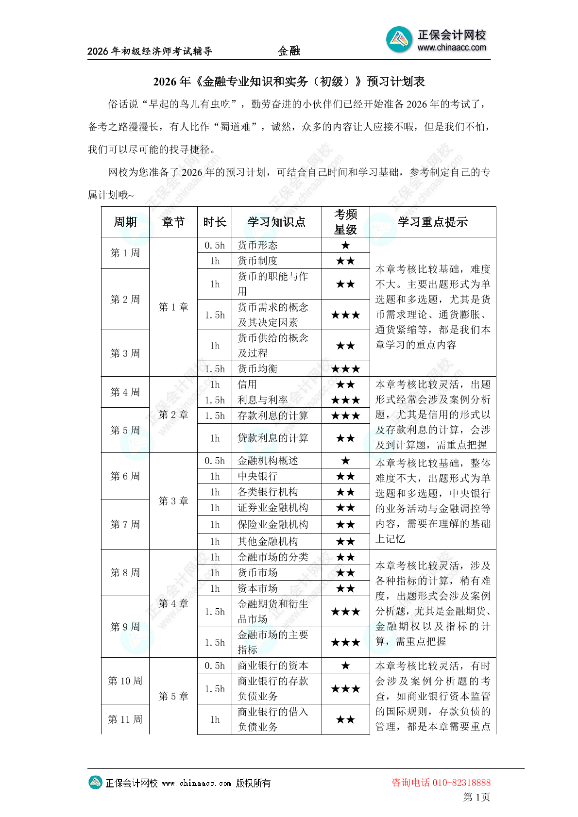 2026初级经济师《金融》各章节建议学习时长以及各阶段备考时长