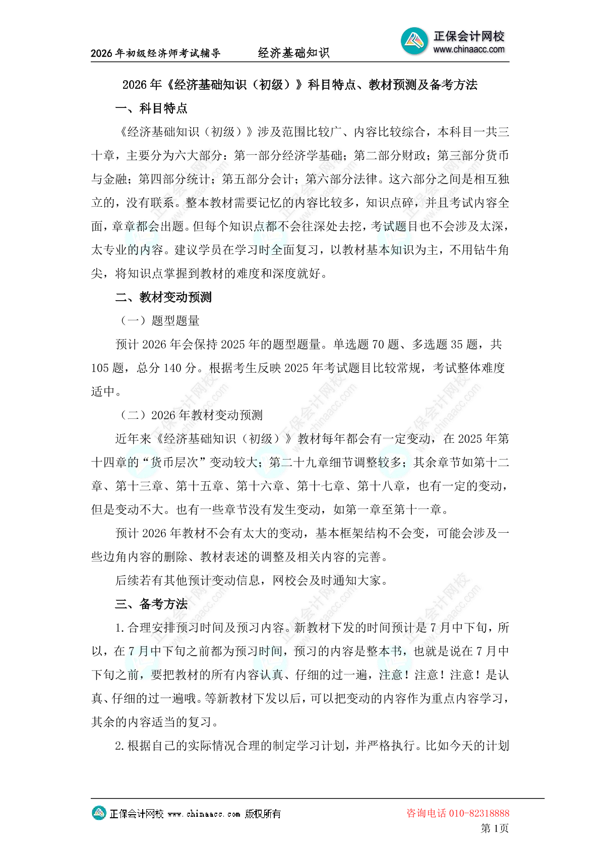 2026初级经济师《经济基础知识》科目特点、教材预测及备考方法