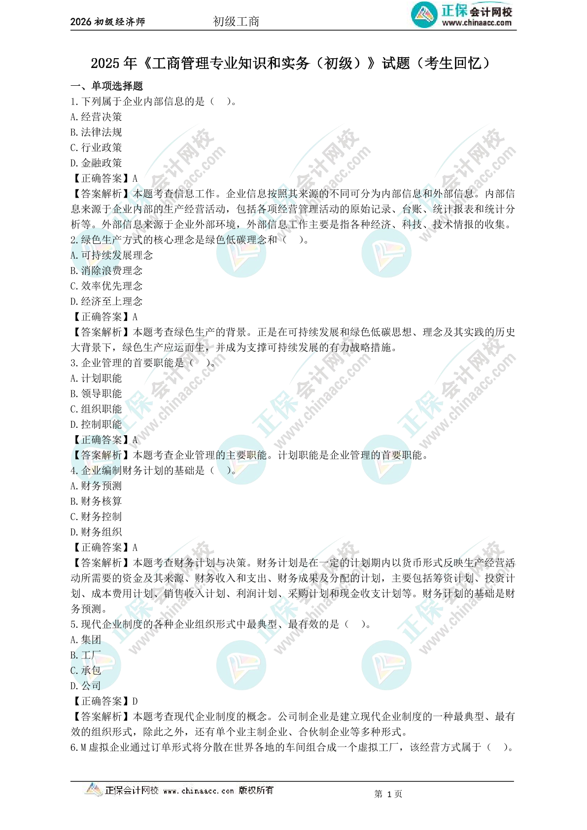 2021初级经济师《工商管理》试题(考生回忆)