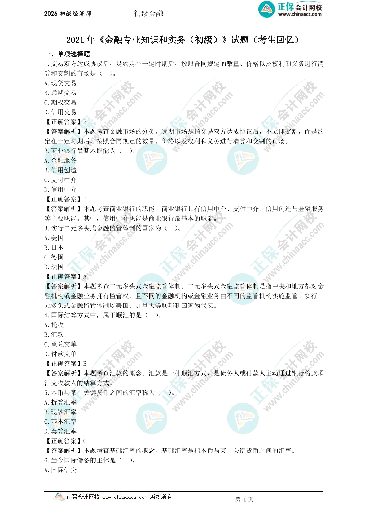2024年初级经济师《金融》试题(考生回忆)
