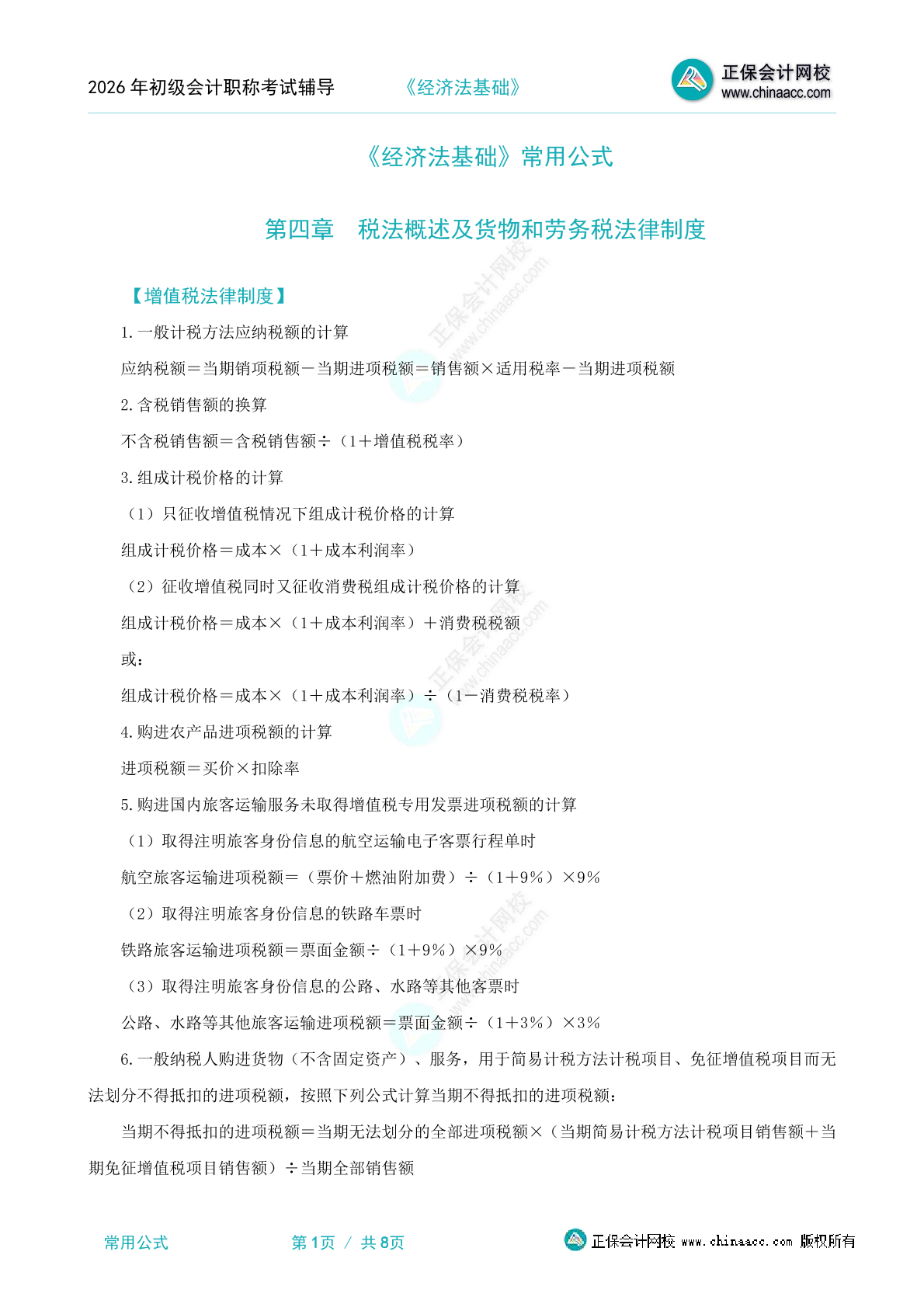 2025年《经济法基础》常用公式