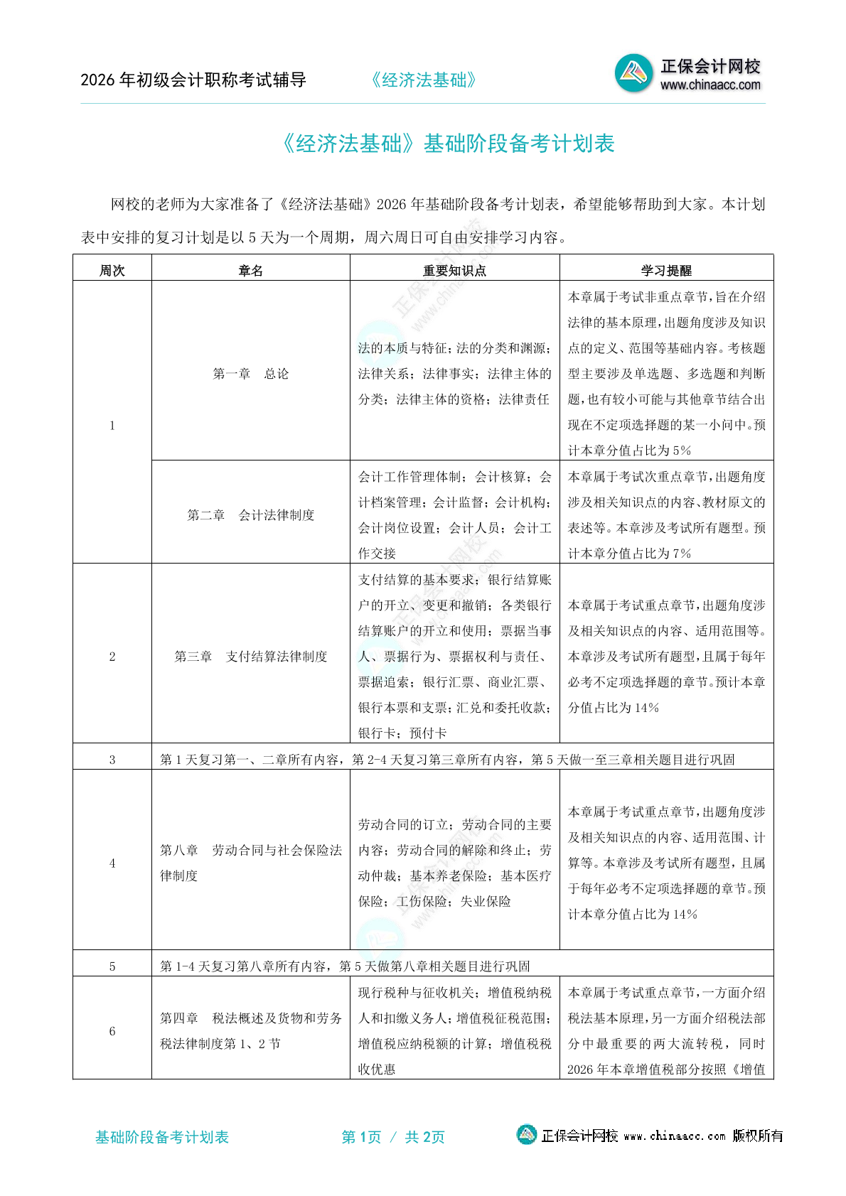 2026年《经济法基础》基础阶段备考计划