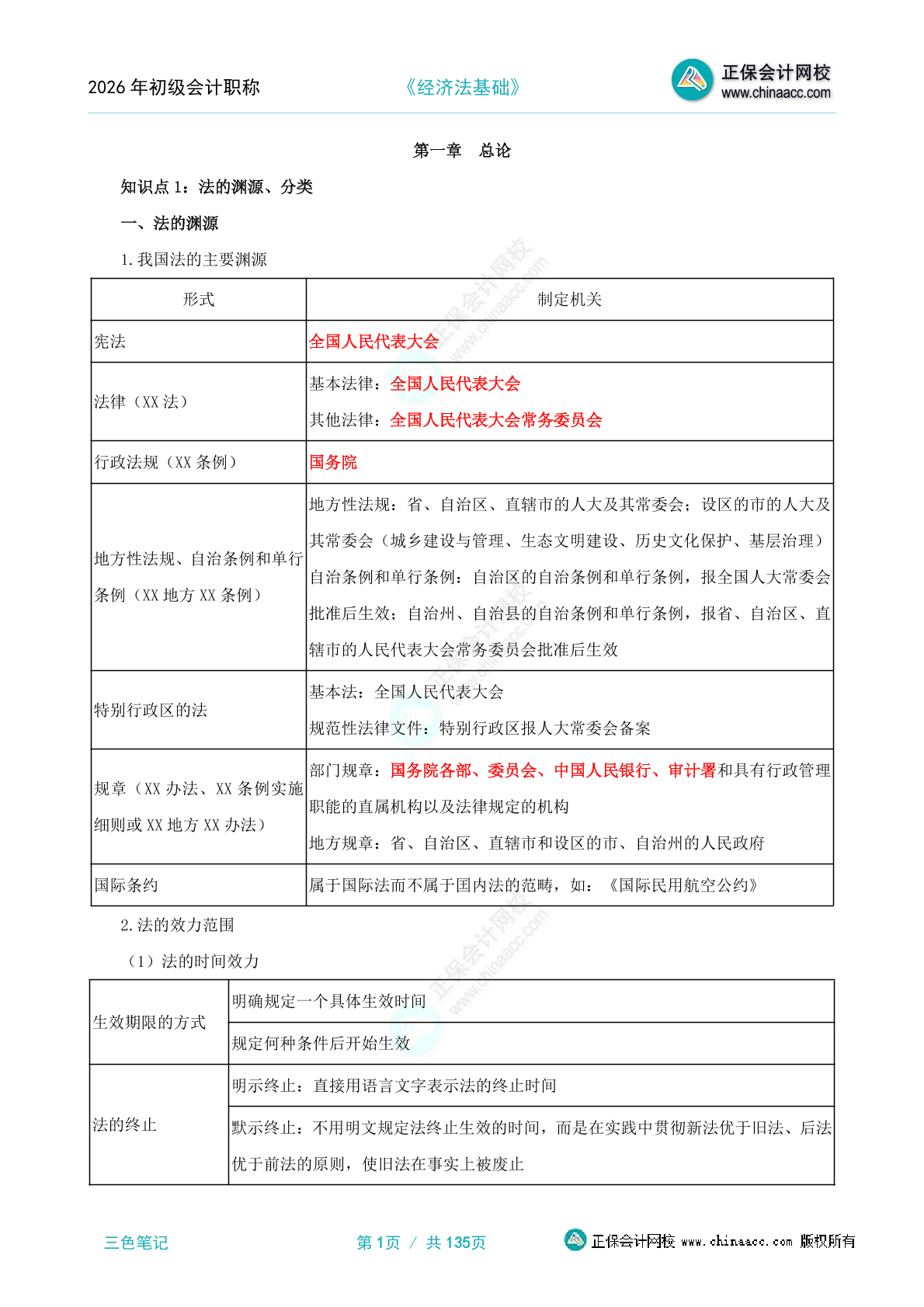 2025年初级会计职称三色笔记-经济法基础