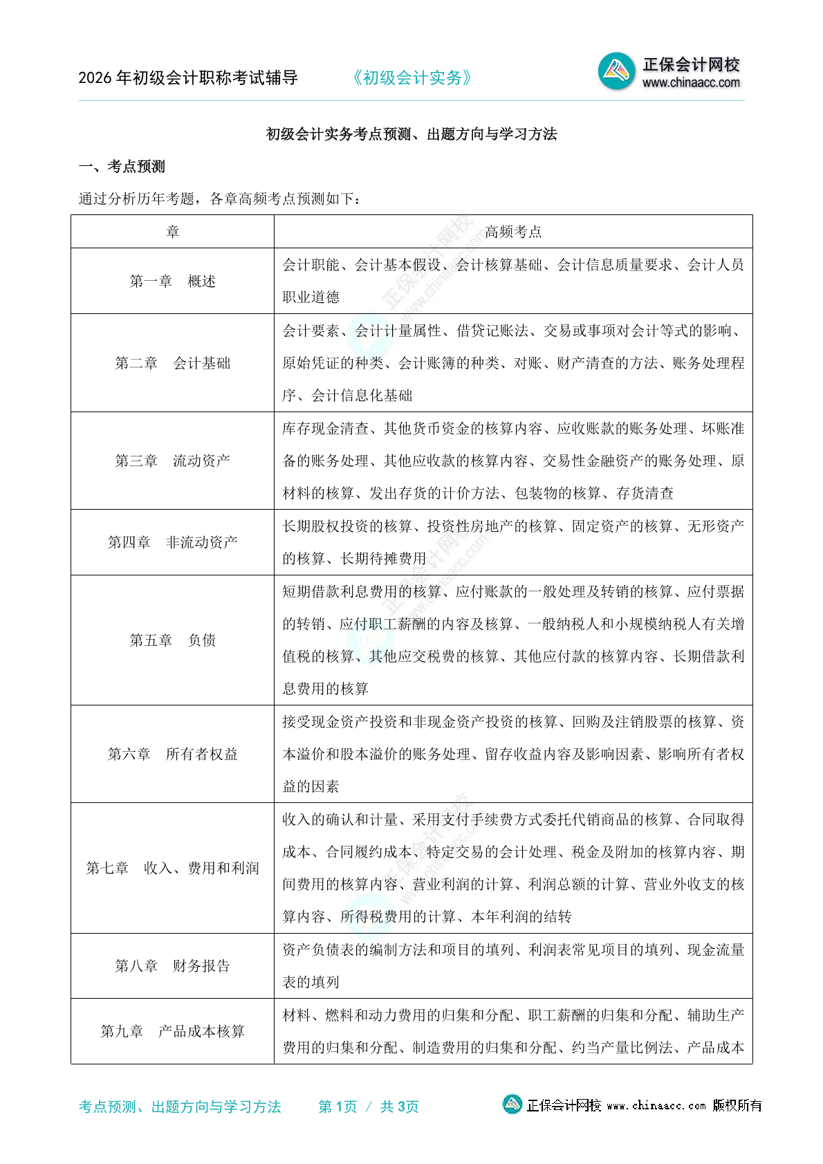 初级会计实务考点预测、出题方向与学习方法