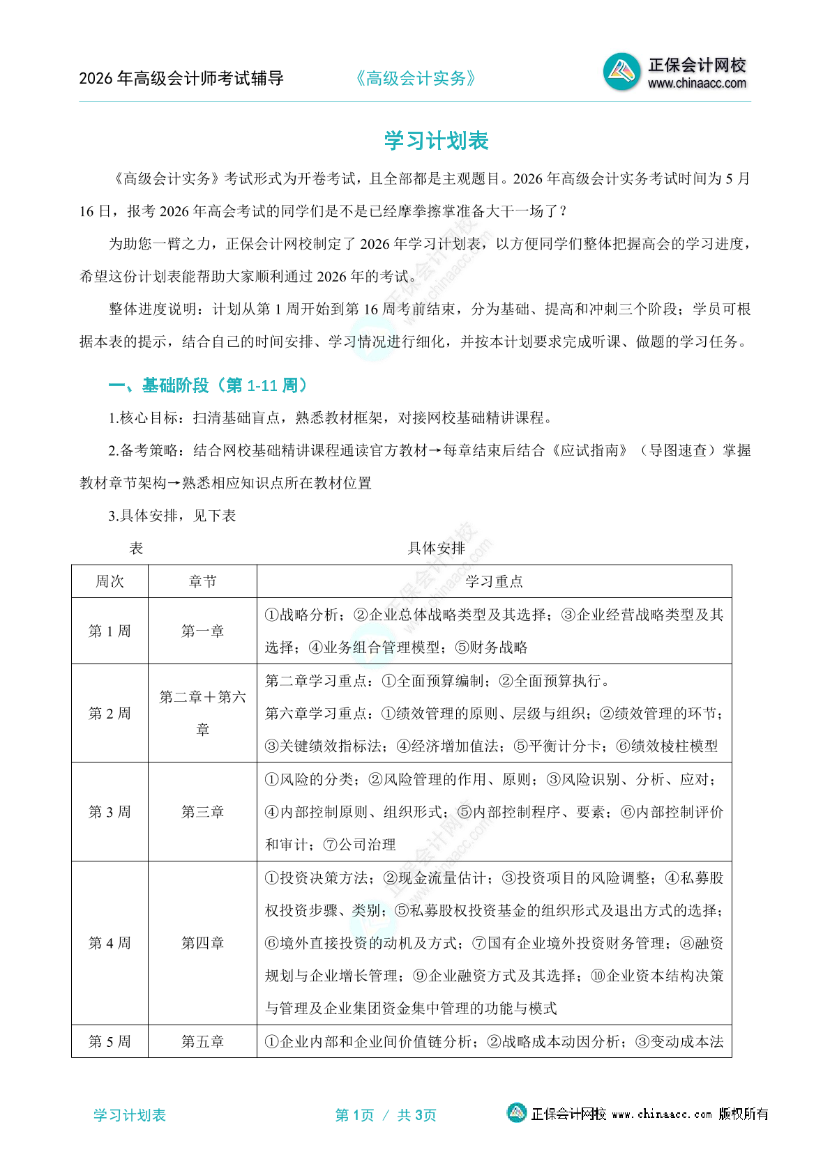 2026年《高级会计实务》学习计划表
