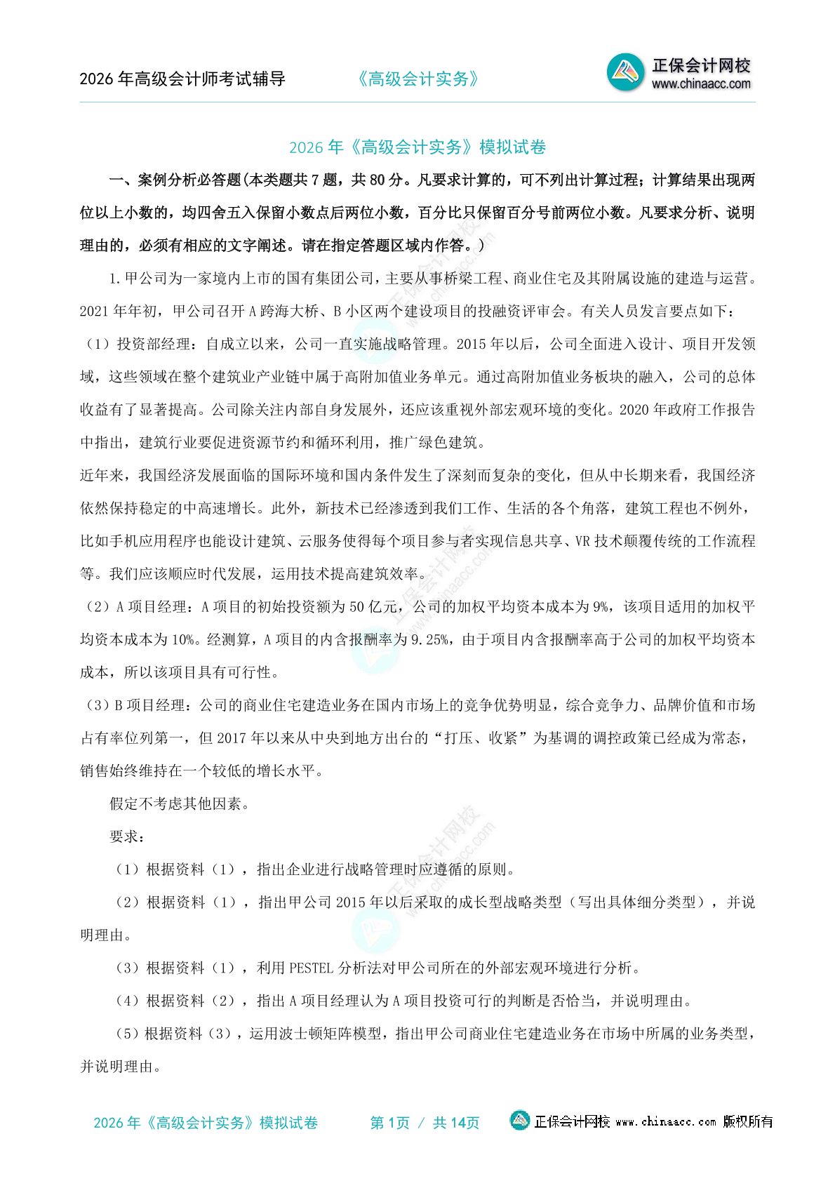 【题目】2026高级会计实务《全真模拟试卷》试读