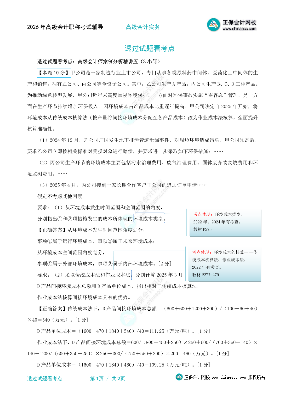 2026年《高级会计实务》透过试题看考点—案例五