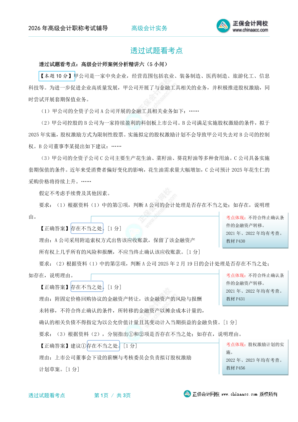 2026年《高级会计实务》透过试题看考点—案例六