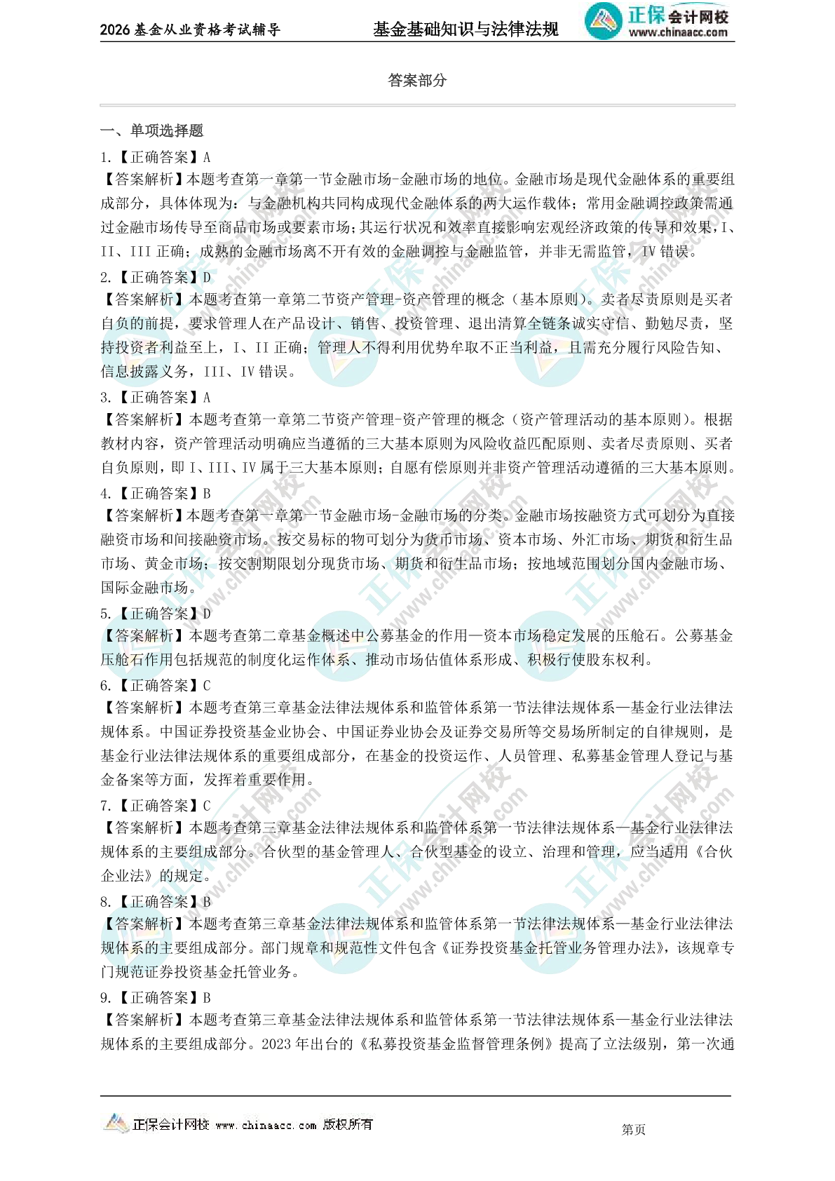 《基金法律法规、职业道德与业务规范》模拟题 - 答案