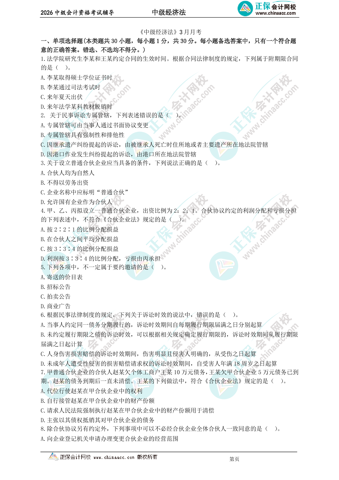 2026年中级会计《财务管理》3月月考卷