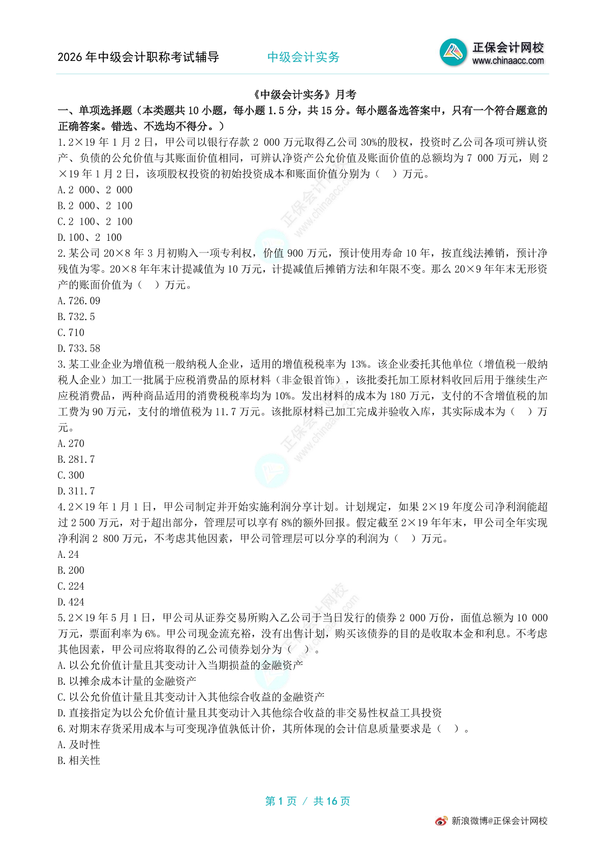 版权说明:本文档由正保会计教研团队提供并上传,若内容存在侵权,请联系客服处理!