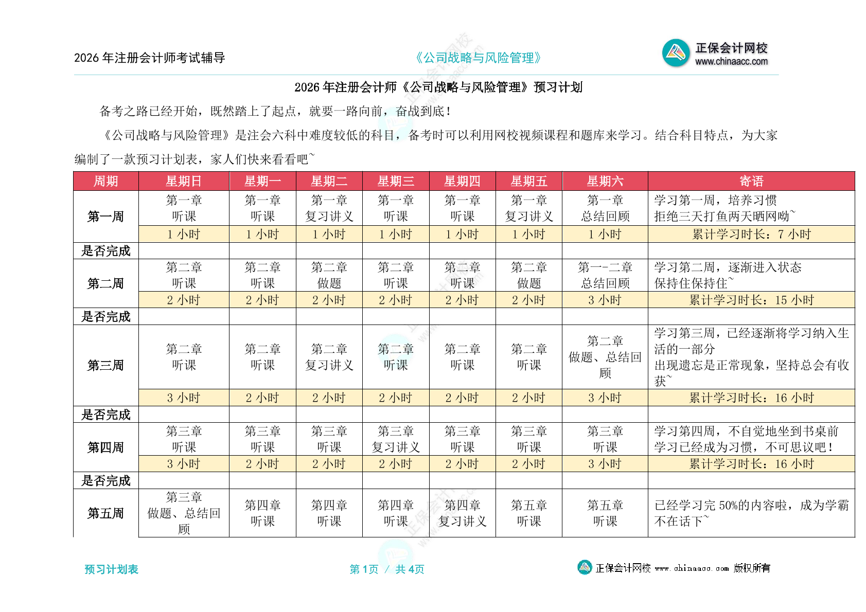 2026年注会综合阶段预习计划