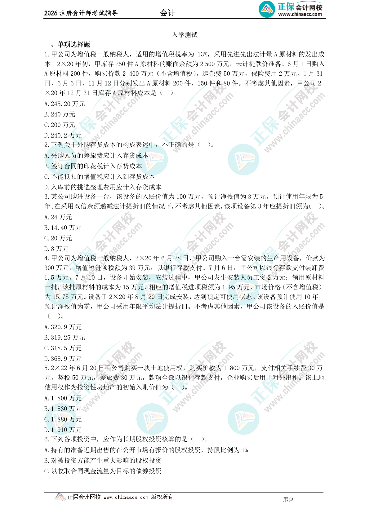 版权说明:本文档由正保会计教研团队提供并上传,若内容存在侵权,请联系客服处理!