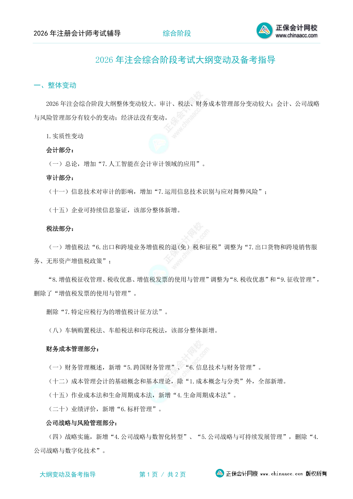 2026注会《战略》考试大纲变动及解读