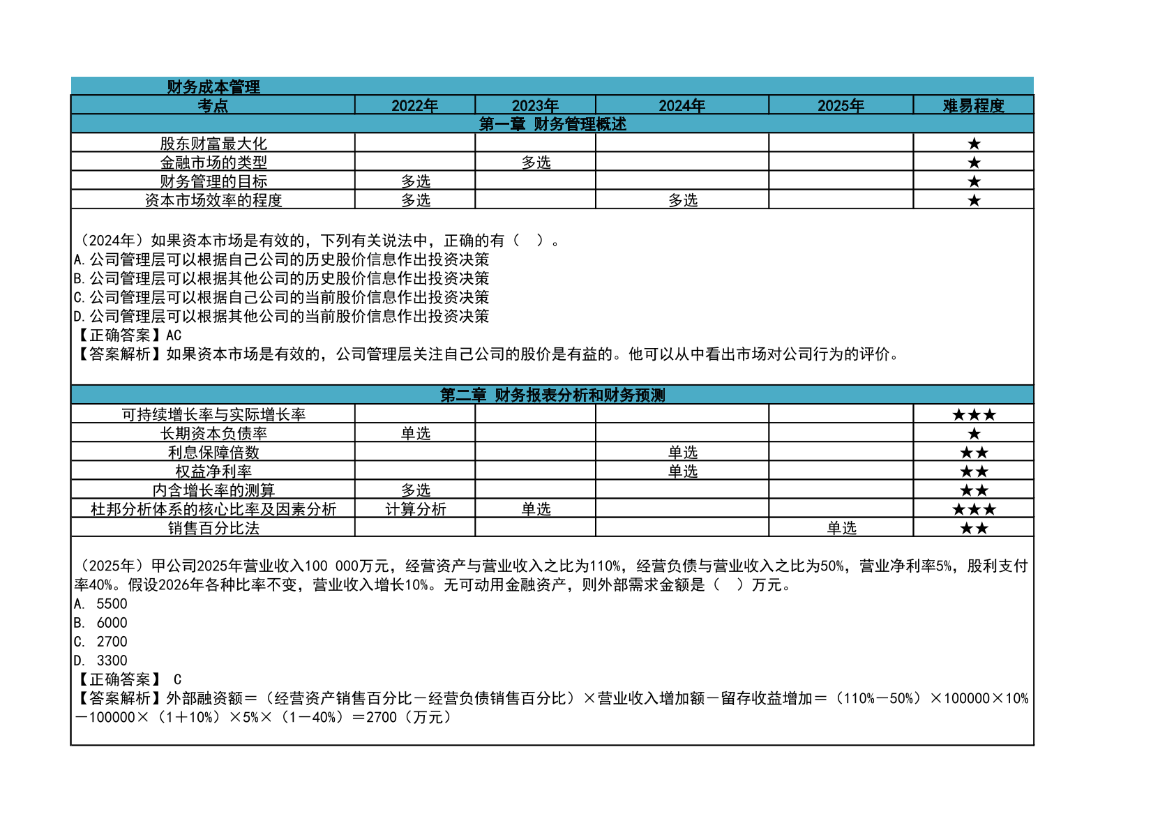 2024年注会《财管》高频考点第9章