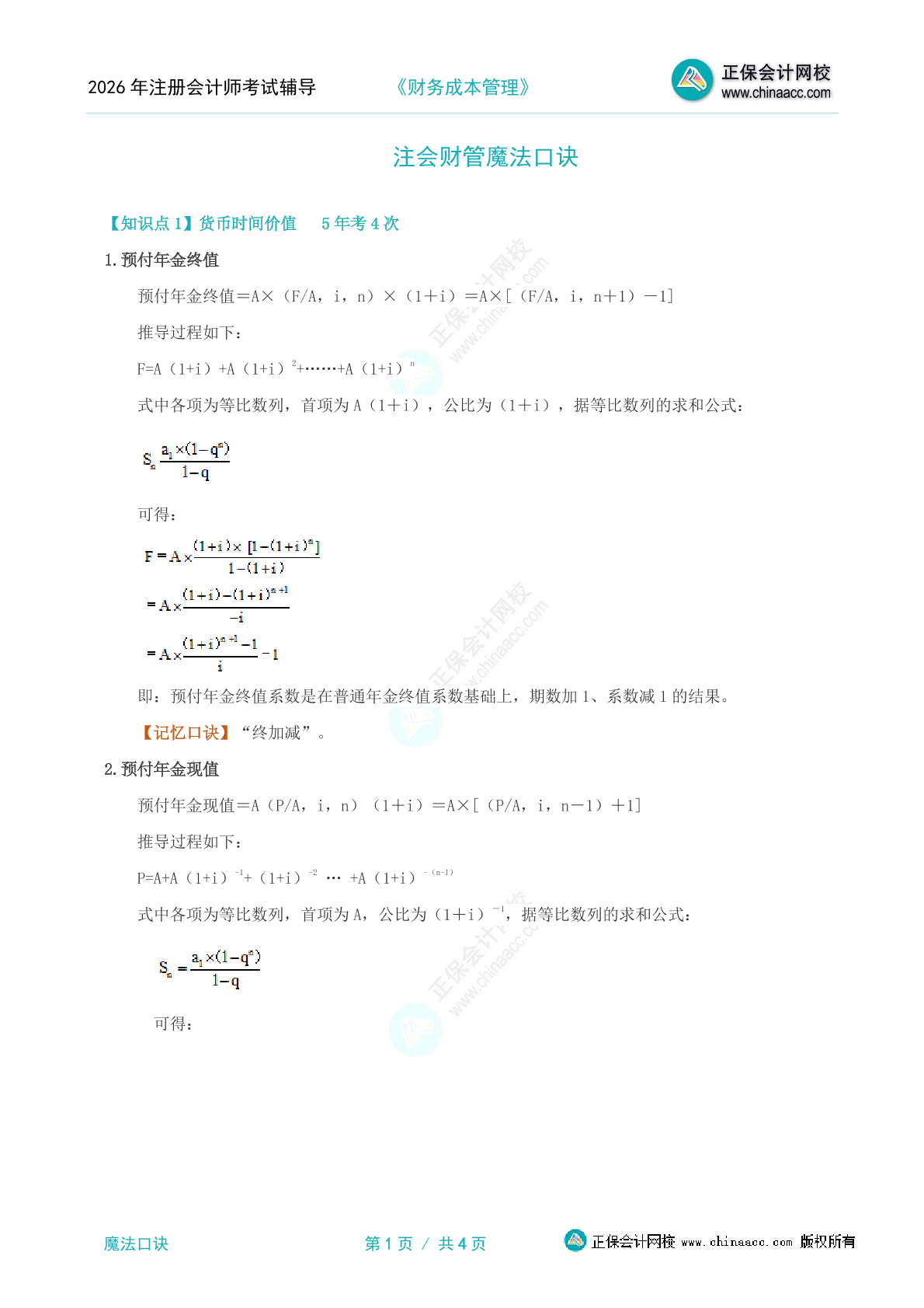 注会《会计》魔法口诀