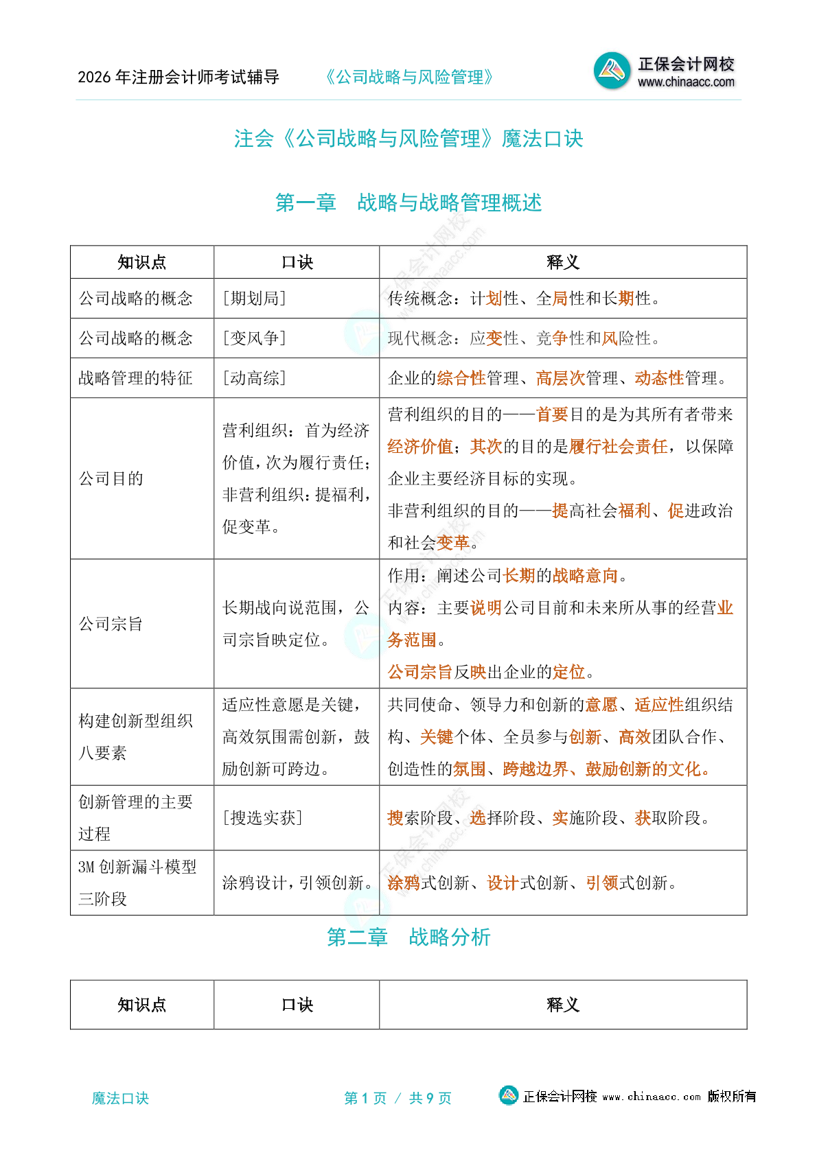 注会《公司战略与风险管理》魔法口诀