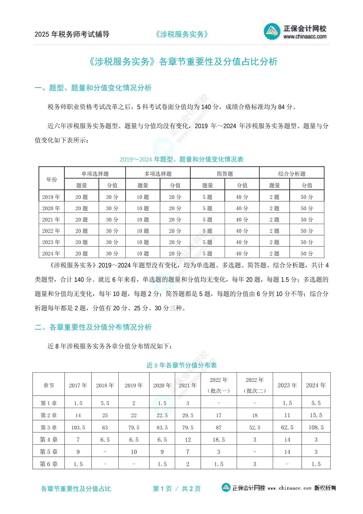 2025年《涉税服务相关法律》各章节重要性及分值占比分析