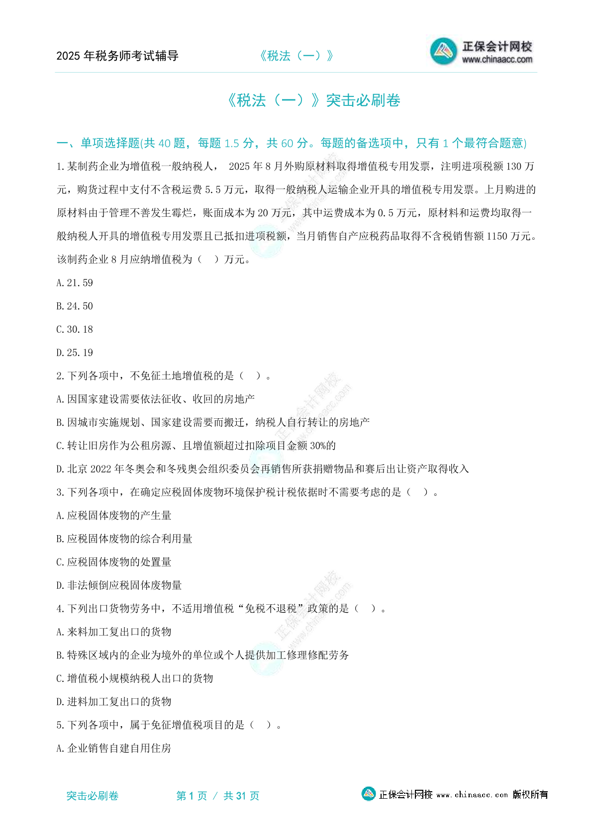 版权说明:本文档由正保会计教研团队提供并上传,若内容存在侵权,请联系客服处理!