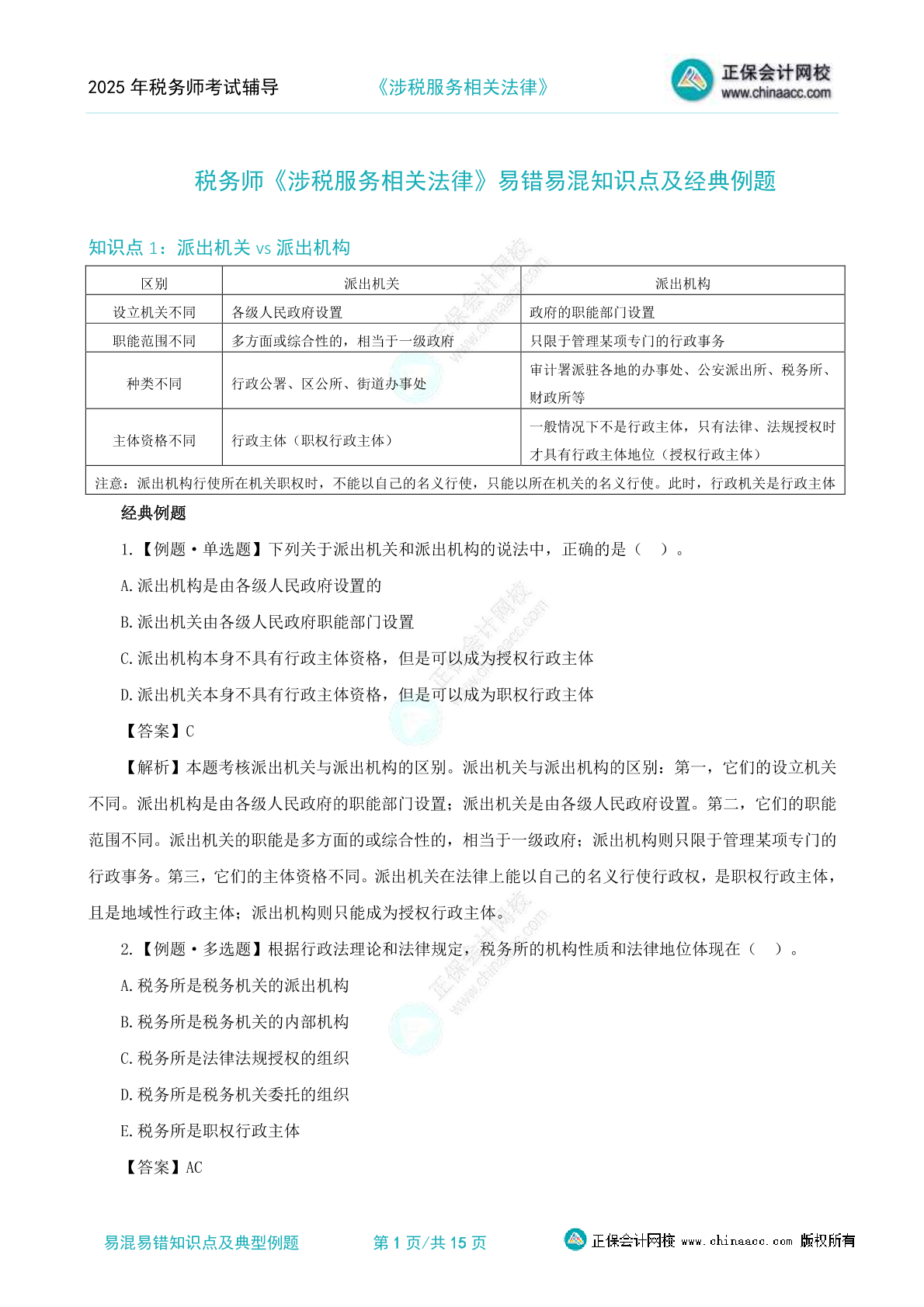 2025税务师《涉税服务实务》易错易混知识点及经典例题