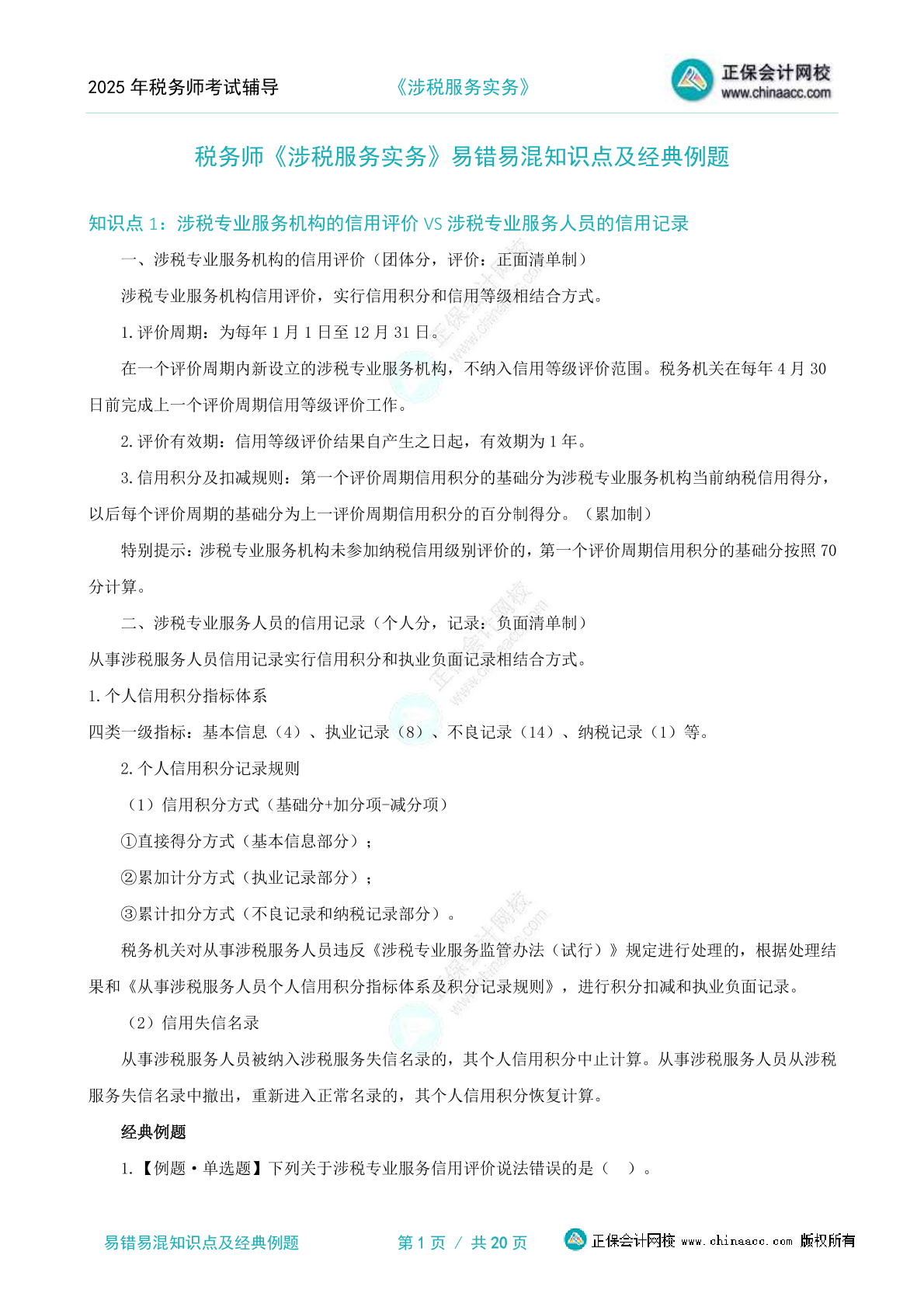 2025税务师《涉税服务相关法律》易错易混知识点及经典例题
