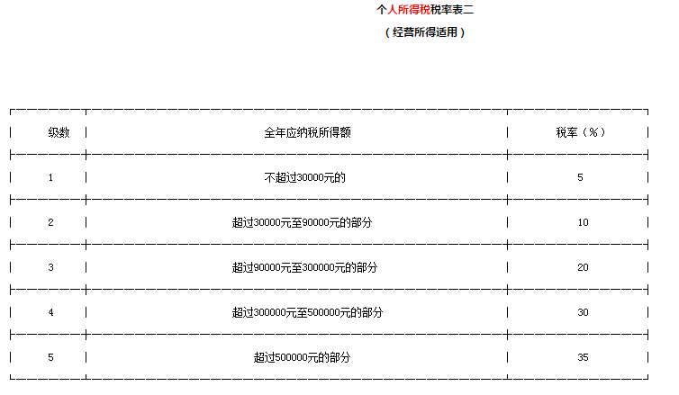 (二)经营所得,适用百分之五至百分之三十五的超额累进税率(税率表附后);