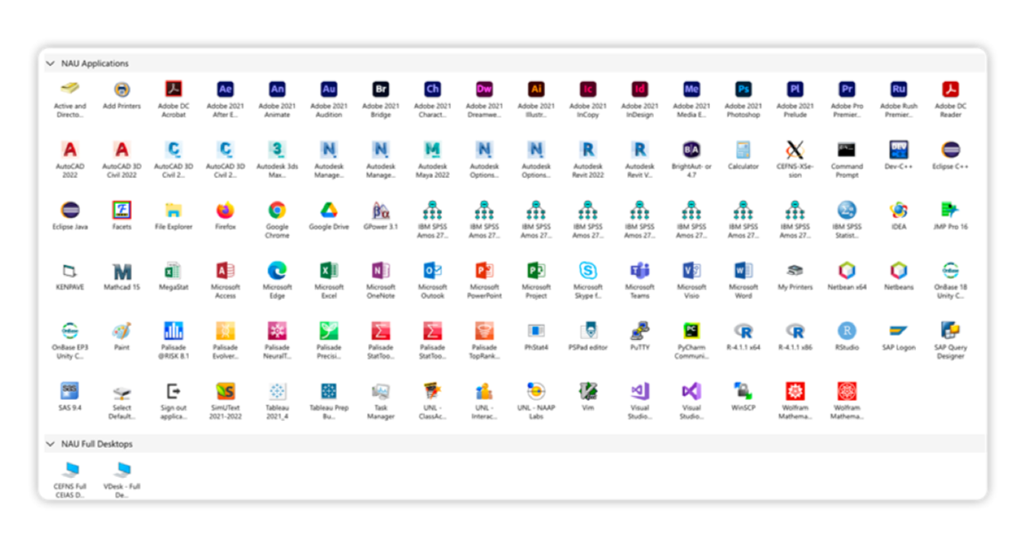 在读期间可以通过学生账号获取大量IT资源,具体可以查看:https://in.nau.edu/its/services。 大量的付费软件都可以使用学校的账号登录并激活,例如Adobe全家桶、Office、Windows、SQL Server、Visio、Visual Studio。